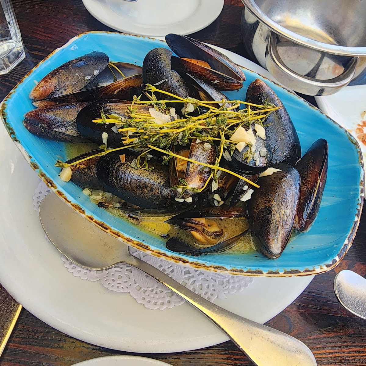 As a spot known for classic French fare, Meet in Paris offers a selection that includes standout items like French Onion Soup with a well-balanced broth, escargot, and a variety of mussel preparations — something notable given how rare mussels are on LA menus. Steak Frite and charcuterie boards round out the offerings, with desserts such as a modestly sweet chocolate treat and apple tarte tatin providing a pleasant finish. The fresh sourdough bread served here is a nice touch that complements meals well.
