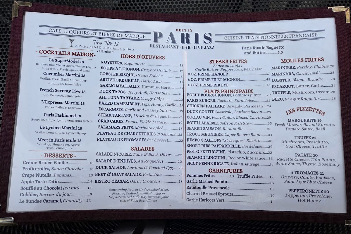 Meet in Paris French Bistro Menu